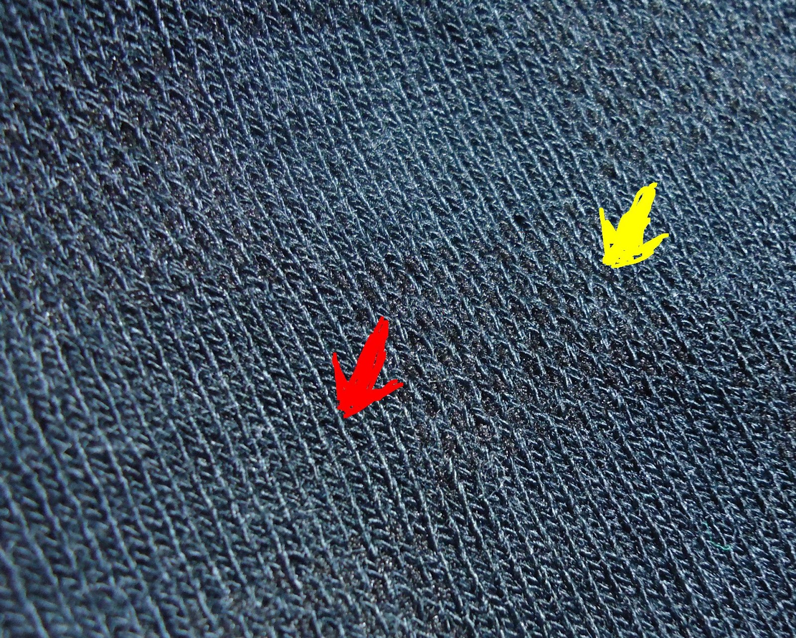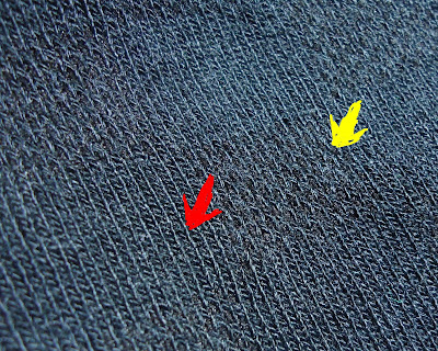 | 黃色箭頭和紅色箭頭處,織法不同 |