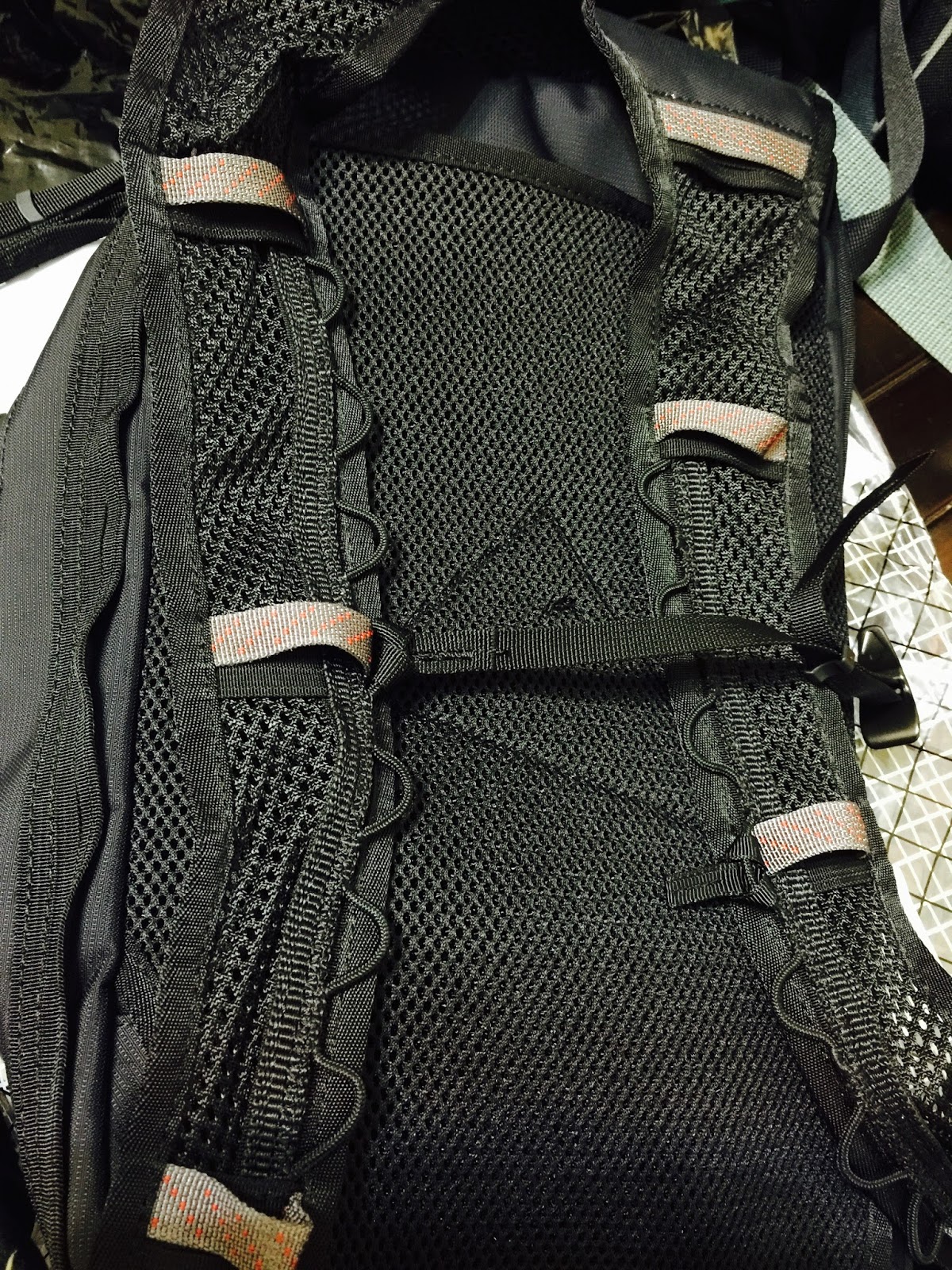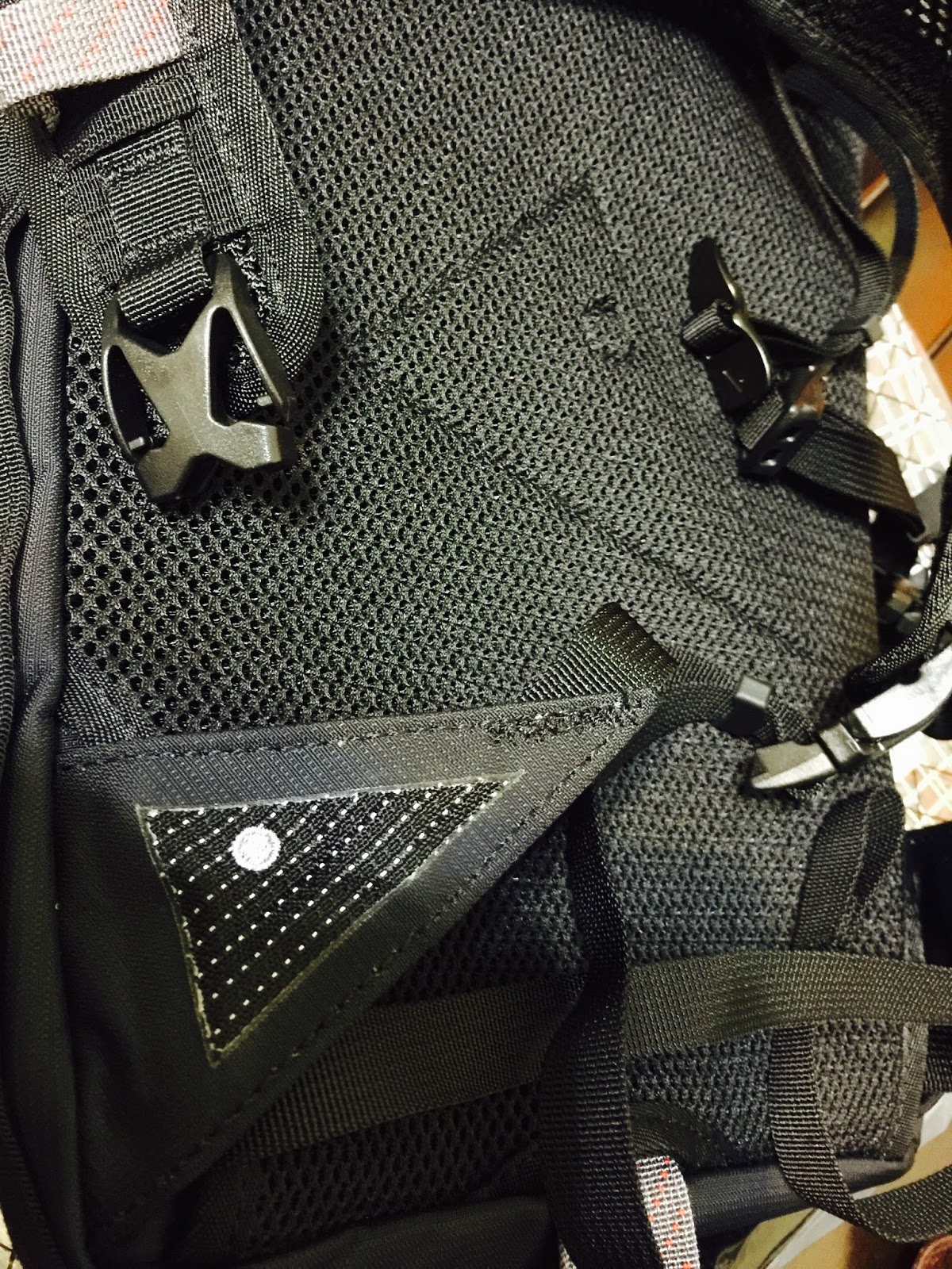 | 背帶還沒「掏出來」之前隱藏在透氣背網裡 隱隱約約還有攀山鼠的logo |