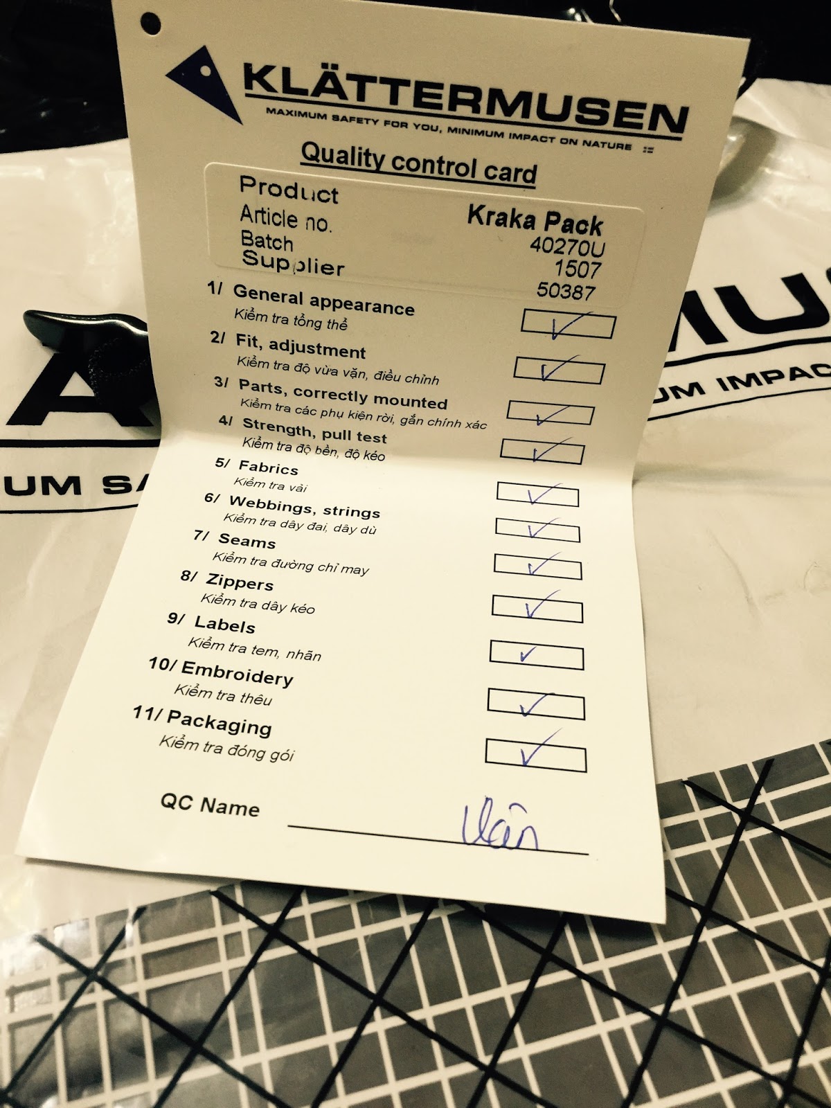 | 瑞典品管人員的檢核表 附上簽名以示負責 |